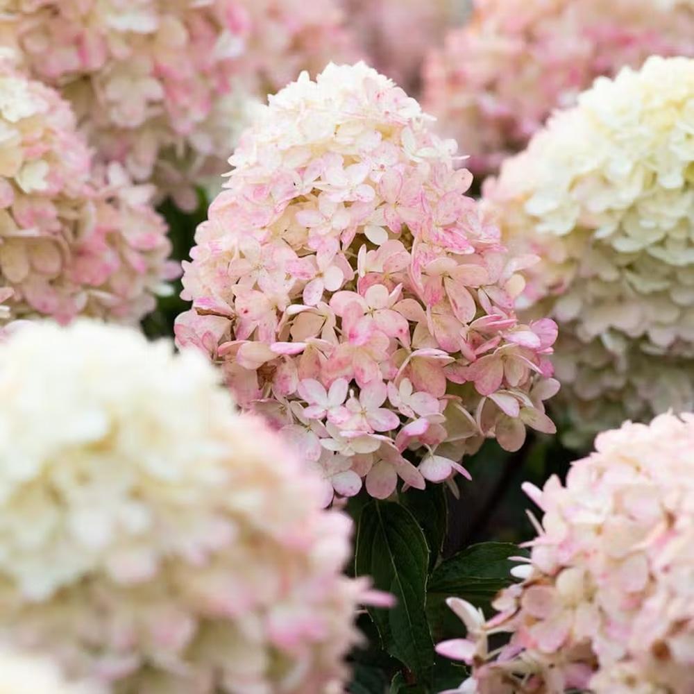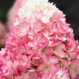 Хортензия ‘Living Raspberry Pink’ – бели съцветия, които преливат в розово. Здрави клони, цъфтеж до 100 дни. Идеална за слънце, полусянка.