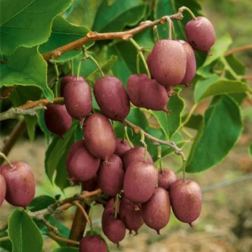 Киви arguta Ken s Red Този уникален сорт е създаден в Нова Зеландия от градинаря Кен Нобс, който кръстосва два вида издръжливо киви (Actinidia arguta cordifolia и Actinidia melanandra)