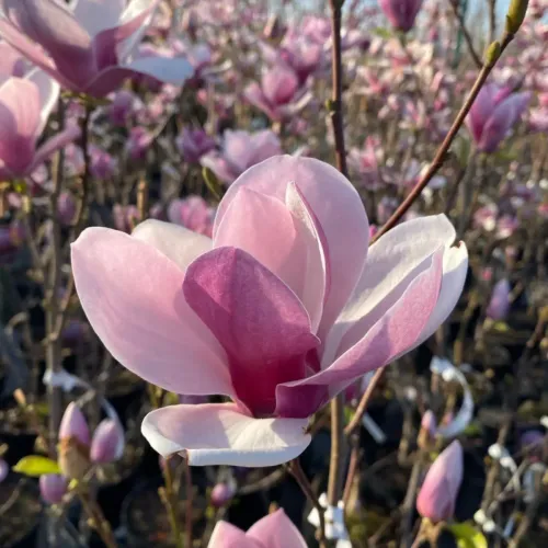 Магнолията ‘Soul. Satisfaction’ е сорт, който напълно оправдава името си. Тя е селектирана, за да предложи най-доброто от света на магнолиите: зашеметяващ визуален контраст, огромни цветове и изключително лесна поддръжка. Когато разцъфне, тя прилича на дърво, отрупано с изящни порцеланови купи, чийто наситено розов цвят отвън прелива в чиста бяла вътрешност – гледка, която превръща градината в галерия на природата.