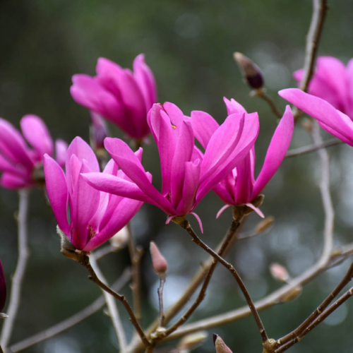 Магнолията ‘Susan’ е може би най-разпространеният и устойчив хибрид, създаден чрез кръстоска между M. liliiflora ‘Nigra’ и M. stellata ‘Rosea’. Тя е перфектният избор за всеки, който иска магнолия, която „просто работи“. Със своя балансиран растеж и способност да цъфти още в съвсем млада възраст, тя е спечелила престижната награда Award of Garden Merit на Кралското градинарско дружество.