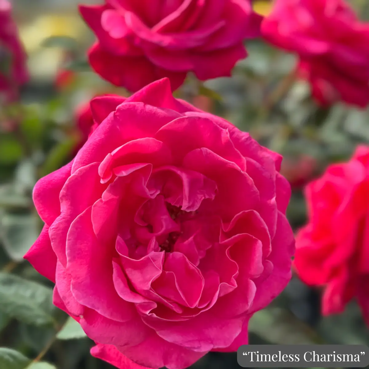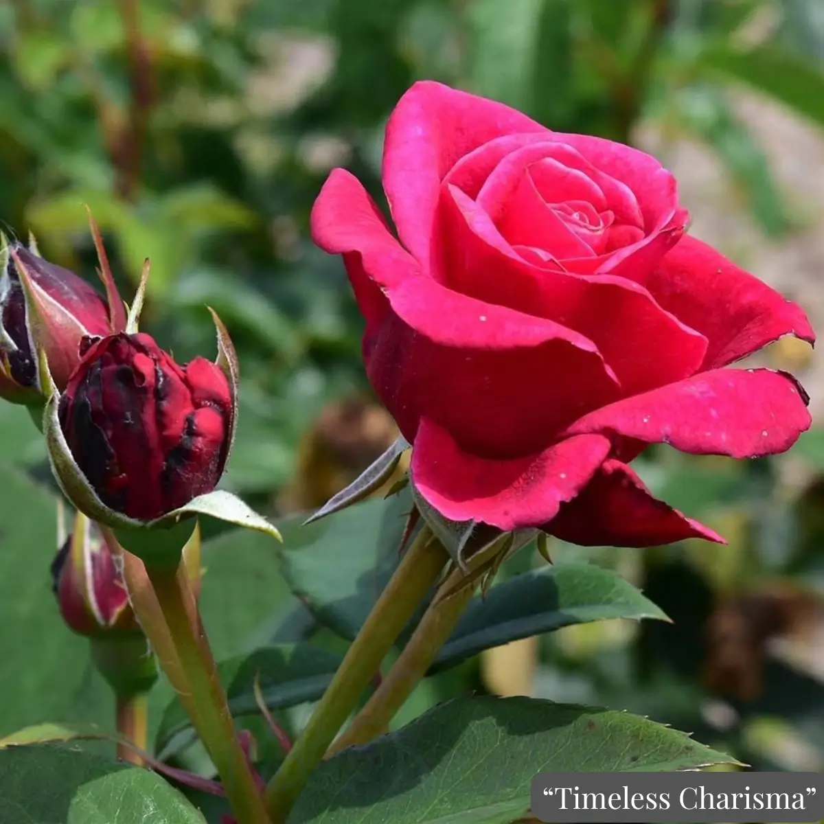 ‘Timeless Charisma’ е роза, която оправдава името си – тя притежава неустоим чар и присъствие. Нейните цветове са в перфектния нюанс на наситено червеното, който не прегаря лесно на слънцето. Като част от серията „Home Florist“, тя е създадена с мисъл за домашния уют – стъблата са дълги и здрави, а цветовете запазват своята свежест и аромат във вазата за изключително дълъг период.